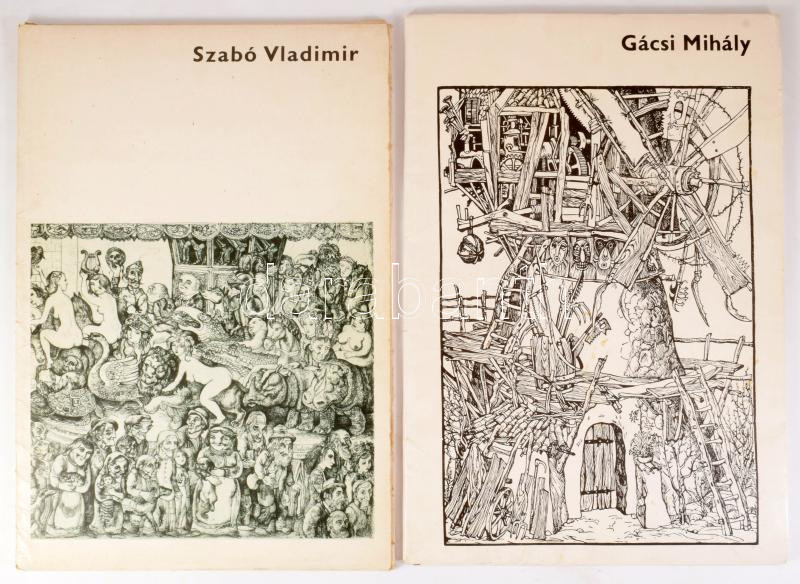 Frank János: Szabó Vladimir. Bp., 1976, Corvina, 8 p.+12 t (ofszet reprodukciók). Magyar, angol, francia, és német nyelven. Kiadói papír mappa. + Egri Mária: Gácsi Mihály. Bp., 1977, Corvina, 4 p.+12 (reprodukciók) t. Kiadói illusztrált papír mappában, 42×28 cm