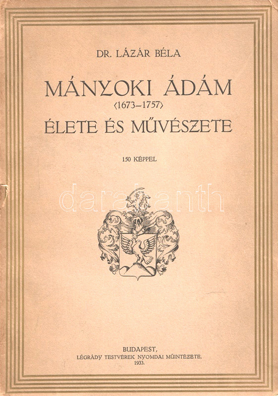 Lázár Béla (1869-1950) művészeti író, múzeumigazgató, a képzőművészeti és műgyűjtő társulat, a Munkácsy-céh alapítója. Klasszikus és kortárs festőkről egyaránt írt monográfiákat. Mányoki-monográfiája a magyar barokk festészet mesterének életpályáját és művészetét elemzi, számos anekdotikus és életrajzi részlettel. Oldalszámozáson belül további szövegközti illusztrációkkal.