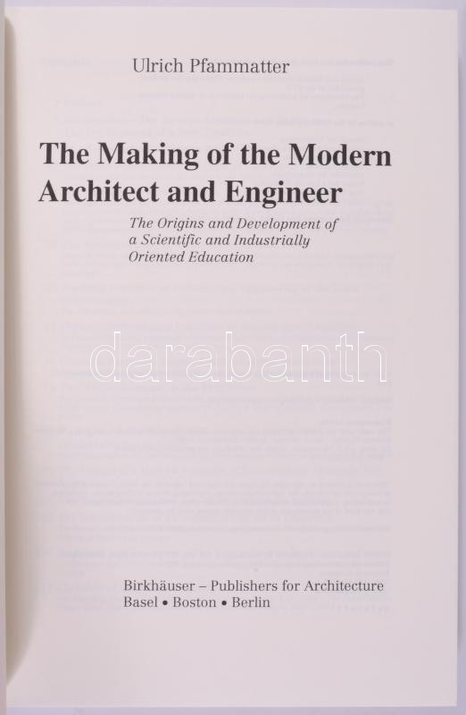 Pfammatter, Ulrich: The Making of the Modern Architect and Engineer. Basel, 2000, Birkhäuser. Kiadói papírkötés, jó állapotban.