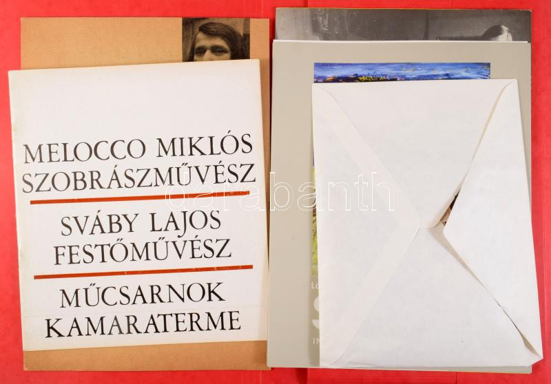 Sváby Lajos festőművészt és munkáit ábrázoló 38 db eredeti fotó + néhány kiállítási meghívó és katalógus.