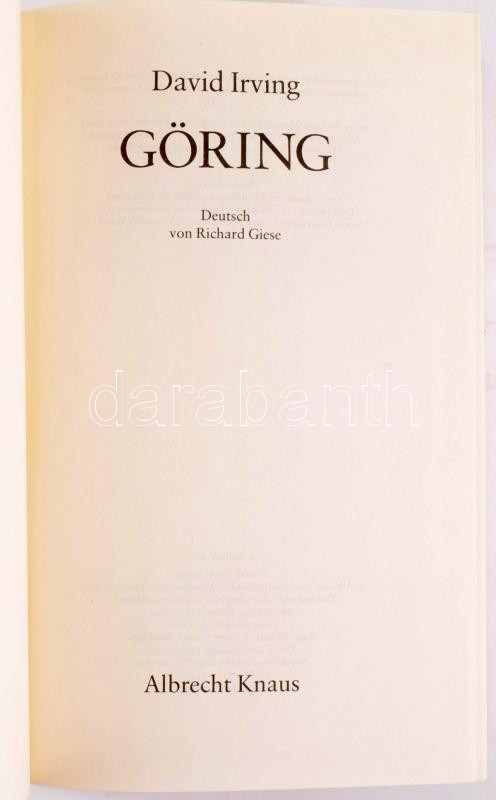 David Irving: Göring. München und Hamburgm 1987, Albrecht Knaus. Német nyelven. Gazdag képanyaggal illusztrált. Kiadói egészvászon-kötés, karcos kiadói papír védőborítóban.
