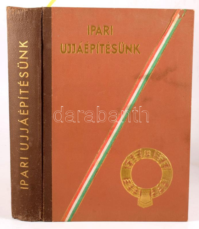 Ipari ujjáépítésünk. Szerk.: Tonelli Sándor. Bp., 1948, Forum Hungaricum. 200+143 p + 7 t. Kiadói aranyozott, dombornyomott díszítésű félvászon-kötésben, nemzetiszín szalaggal díszített elülső táblával, kopott borítóval, a szalagon kis sérüléssel, vetemedett táblákkal, foltos lapokkal.