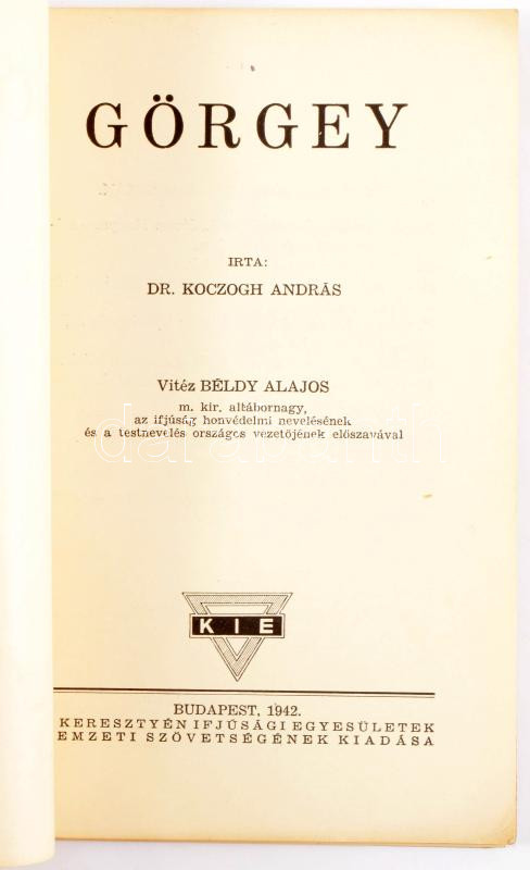 Koczogh András: Görgey. Vitéz Béldy Alajos előszavával. Bp., 1942. Keresztyén Ifjúsági Egyesületek Nemzeti Szövetsége, 48 p. Kiadói rajzos papírkötés, laza fűzéssel.