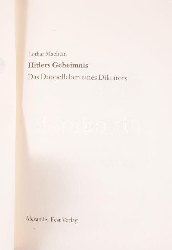 Lothar Machtan: Hitlers Geheimnis. Das Doppelleben eines Diktators. Berlin, 2001, Alexander Fest. Német nyelven. Fekete-fehér képanyaggal illusztrált. Kiadói kartonált papírkötés, kiadói papír védőborítóban.