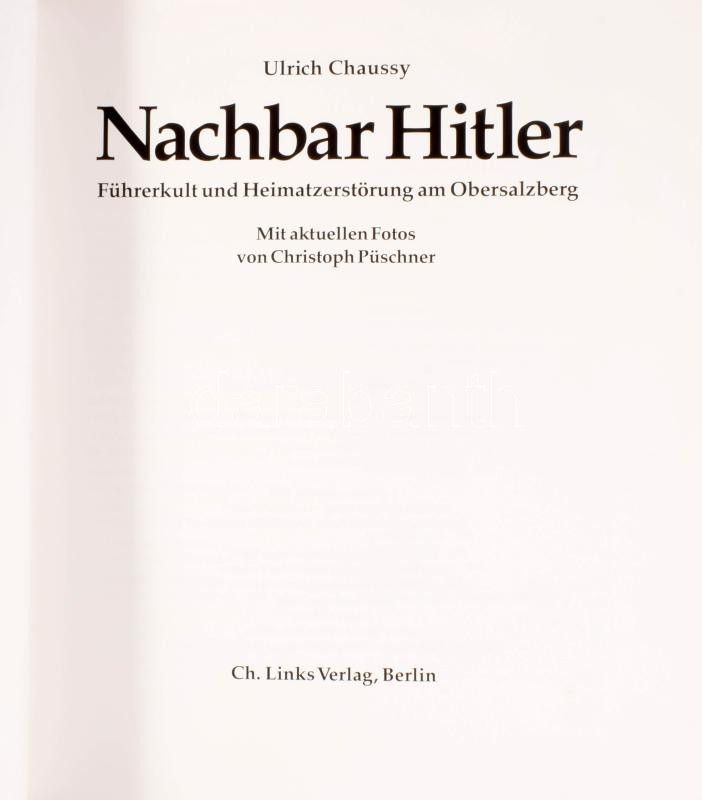Ulrich Chaussy: Nachbar Hitler. Führerkult und Heimatzerstörung am Obersalzberg. Berlin,1995,Ch. Links. Német nyelven. Fekete-fehér képanyaggal illusztrált. Kiadói kartonált papírkötés