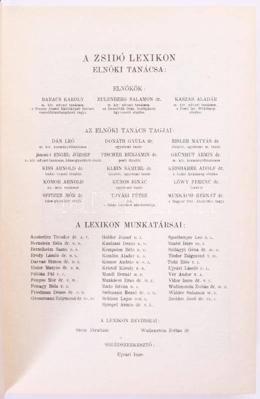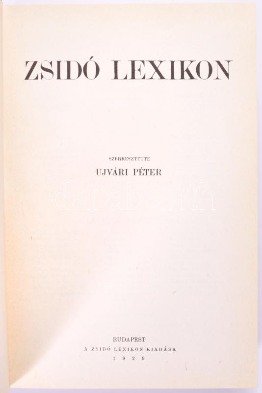 Zsidó Lexikon. Szerk.: Ujvári Péter. Az 1929-es Zsidó Lexikon reprint kiadása. 1987. Kiadói egészvászon kötés, jó állapotban.