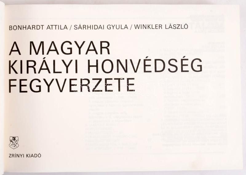 Bonhardt Attila - Sárhidi Gyula - Winkler László: A Magyar Királyi Honvédség fegyverzete. Bp., [1992], Zrínyi, 475+[1] p. Gazdag fekete-fehér képanyaggal illusztrálva. Kiadói kartonált papírkötés.