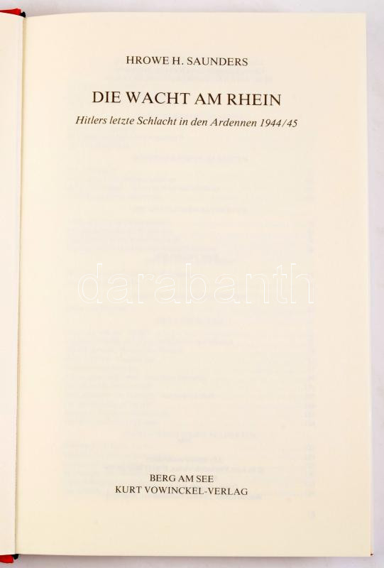 Hrowe H. Saunders: Die Wacht am Rhein. Hitlers letzte Schlacht in den Ardennen 1944/45. Berg am See,1984,Kur Vowinckel.Német nyelven. Gazdag képanyaggal illusztrált. Kiadói egészvászon-kötés, kiadói papír védőborítóban.