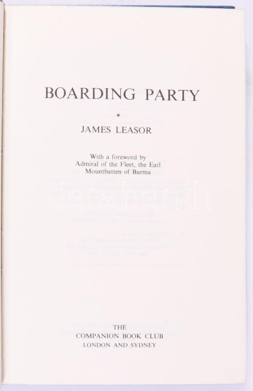 James Leasor: Boarding Party. With a foreword by Admiral of the Fleet, the Earl Mountbatten of Burma. London, 1979, Hamlyn, 255+[1] p. Angol nyelven. Aranyozott egészbőr-kötésben.