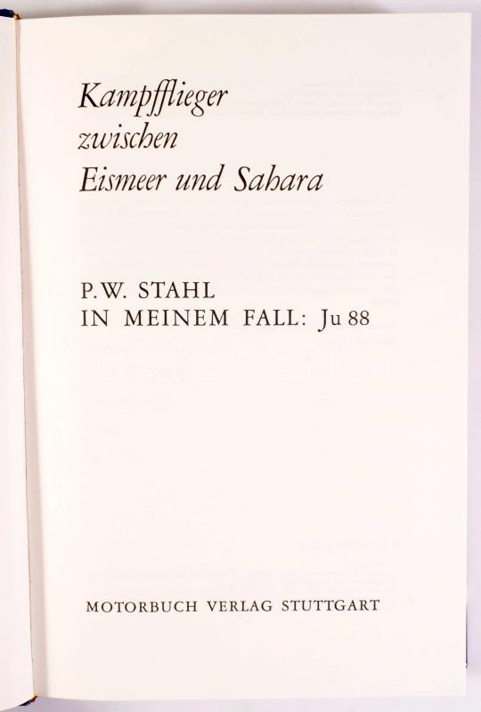 P. W. Stahl: Kampflieger zwischen Eismeer und Sahara. In meinem Fall: Ju 88. Stuttgart, 1982.,Motorbuch Verlag. Német nyelven. Gazdag képanyaggal illusztrált. Kiadói kartonált papírkötés.