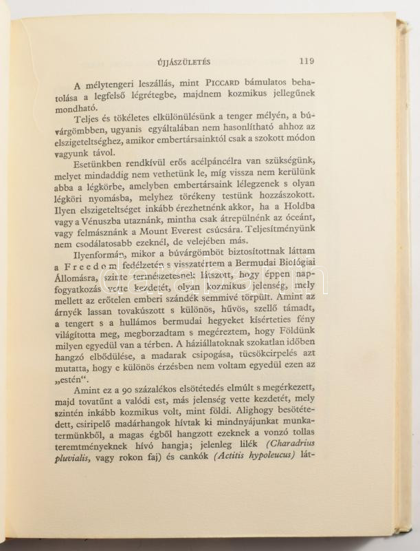 Beebe, William: Félmérföldnyire a tenger színe alatt. Fordította: Dr. Sebestyén Olga és Dr. Wolsky Sándor. Bp., 1937, Kir. M. Természettudományi Társulat. Kiadói egészvászon kötés, szakadt papír borítóval, kissé kopottas állapotban.