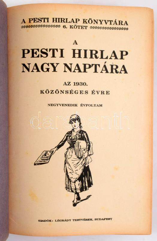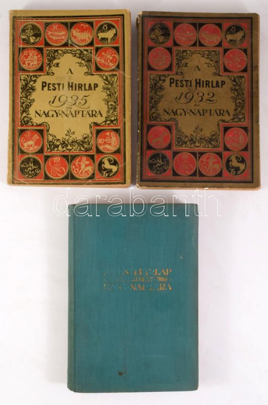 A Pesti Hírlap nagy naptára 1930., 1932., 1935. évi kiadásai (3 kötet). Bp., Légrády Testvérek. Kiadói papírkötés/egészvászon-kötés, változó állapotban.