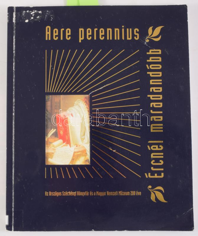 Aere perennius. Ércnél maradandóbb. Az Országos Széchenyi Könyvtár és Magyar Nemzeti Múzeum 200 éve. Kiállítási katalógus. Szerk.: Ferenczy Endre. [Bp.], 2002, Országos Széchenyi Könyvtár, 183+9 p. Gazdag képanyaggal illusztrált. Kiadói papírkötés, kopott borítóval, a borítón szakadással.