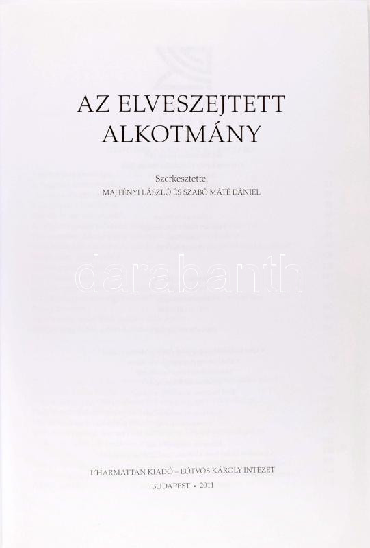 Az elveszejtett alkotmány. Szerk.: Majtényi László és Szabó Máté Dániel. Bp., 2011, L'Harmattan Kiadó - Eötvös Károly Intézet. Kiadói kartonált papírkötés.