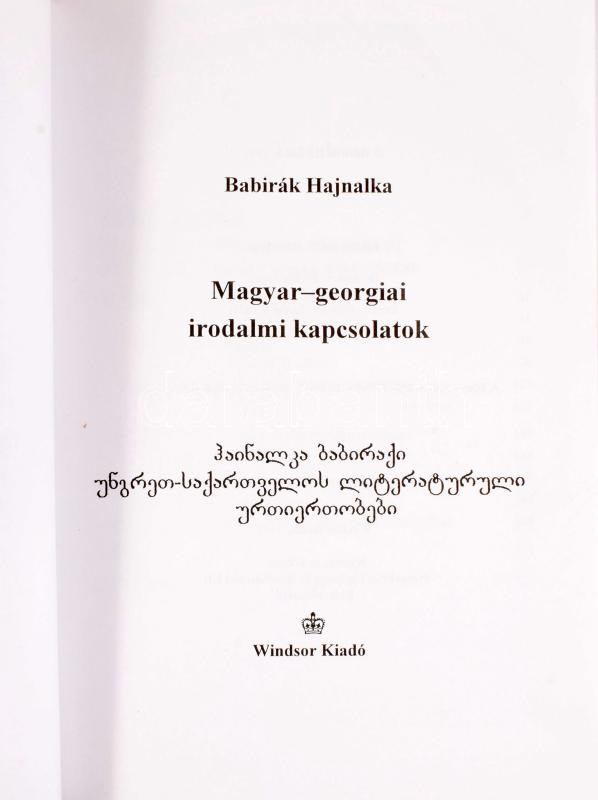 Babirák Hajnalka: Magyar-georgiai irodalmi kapcsolatok. 1997. Windsor. Kiadói papírkötés, jó állapotban.