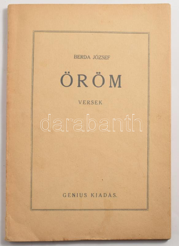 Berda József: Öröm. Versek. Dedikált! Ujpest, 1930. Genius. 45p. Kiadói papírborítóval, szép állapotban
