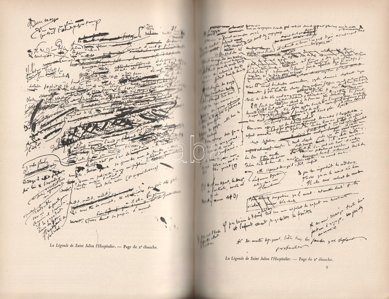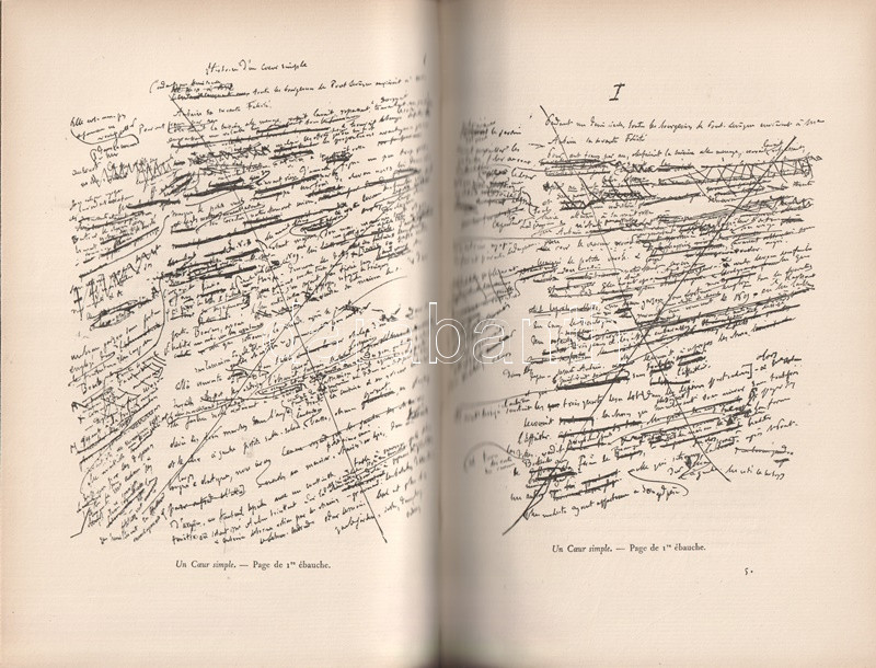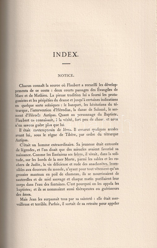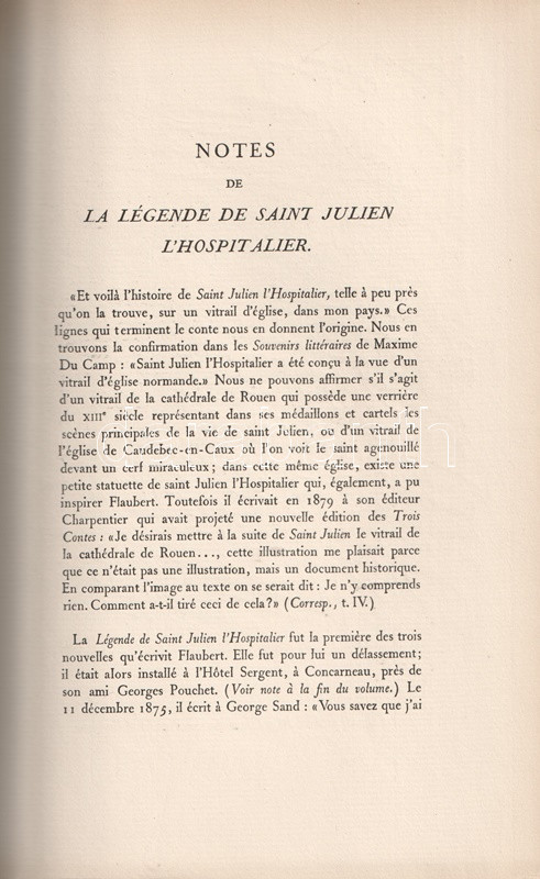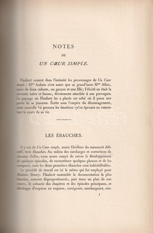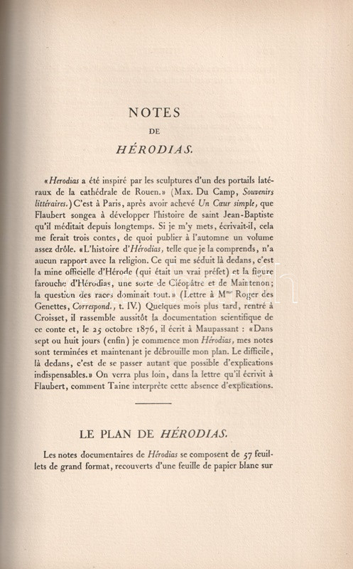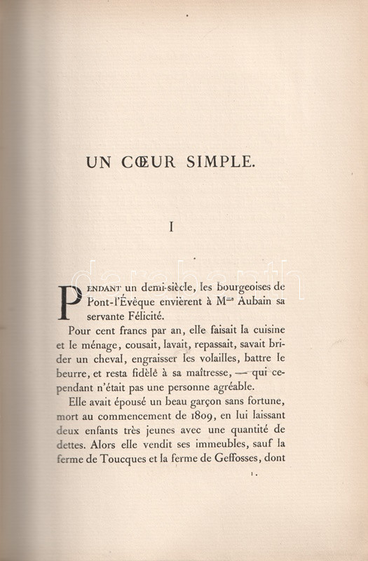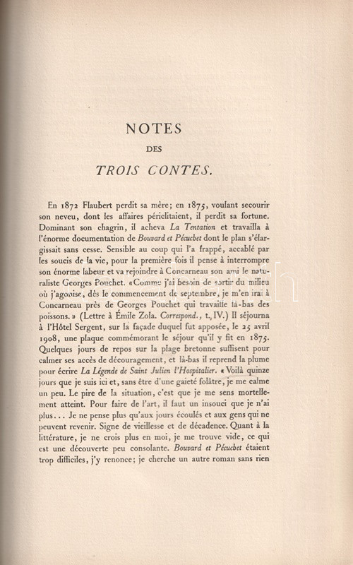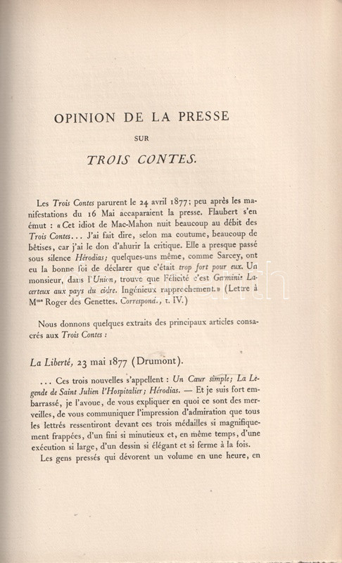 Gustave Flaubert (1821-1880) három klasszikus elbeszélése először 1877-ben jelent meg. Bibliofil kötetünk az életmű egészét közreadó kritikai kiadásból való, ennek megfelelően az elbeszélések után kritikai jegyzetek, szövegváltozatok, kéziratoldal-hasonmások, a kötet végén pedig a novellahármas kiadás- és kritikatörténete. Kiadásunkból 50 számozott példány is készült, példányunk számozatlan.