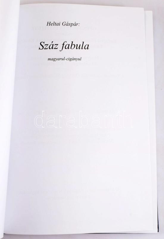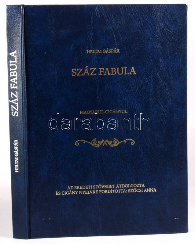 Heltai Gáspár: Száz fabula magyarul-cigányul. Az eredeti szöveget átdolg. és cigány nyelvre ford.: Szőcsi Anna. [Bp., 2003], Magyarországi Cigányok Nyelvőrző Egyesülete, 288 p. Kiadói műbőr-kötés.
