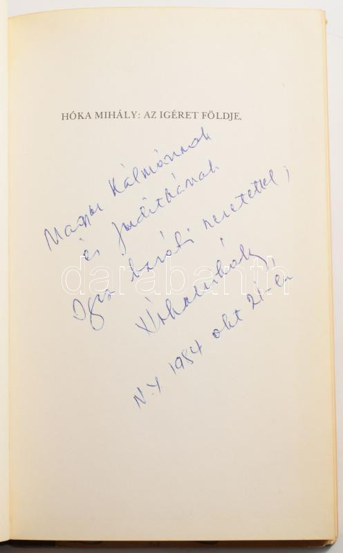 Hóka Mihály: Az ígéret földje. Filmnovella Árpád fejedelemről és a honfoglalásról. A szerző által dedikált példány . New York, 1975, Magyar Október 23 Mozgalom. Emigráns kiadás. Kiadói kartonált papírkötés, kissé koszos borítóval, kissé sérült kiadói papír védőborítóban.