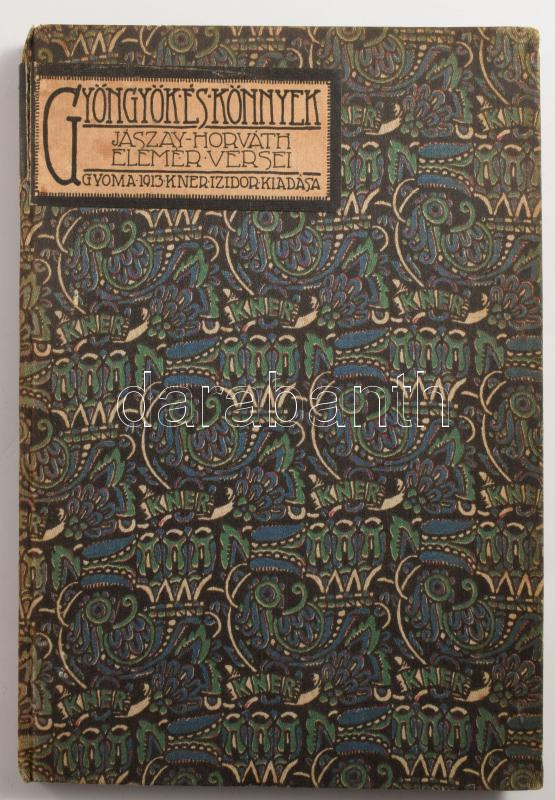 Jászay-Horváth Elemér: Gyöngyök és könnyek. Gyoma 1913. Kner Izidor. Verses kötet. Festett egészvászon kötés, minimális kopással