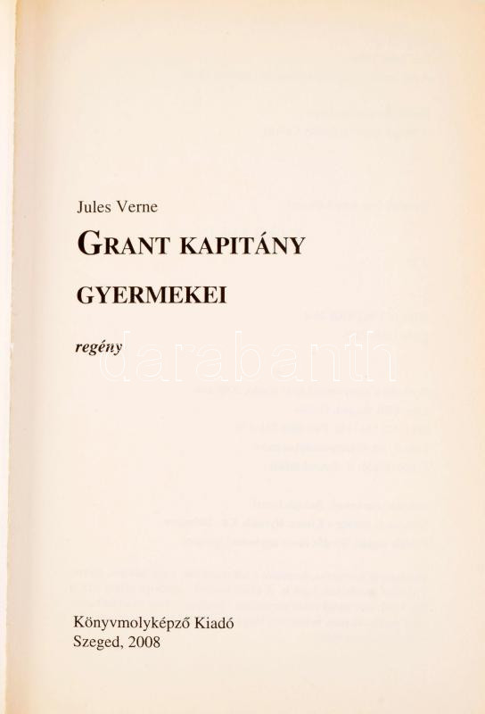 Jules Verne: Grant kapitány gyermekei. Ford.: Bartócz Ilona. Szeged, 2008, Könyvmolyképző, 726+[2] p. Kiadói kartonált papírkötés, kiadói papír védőborítóban.
