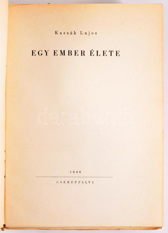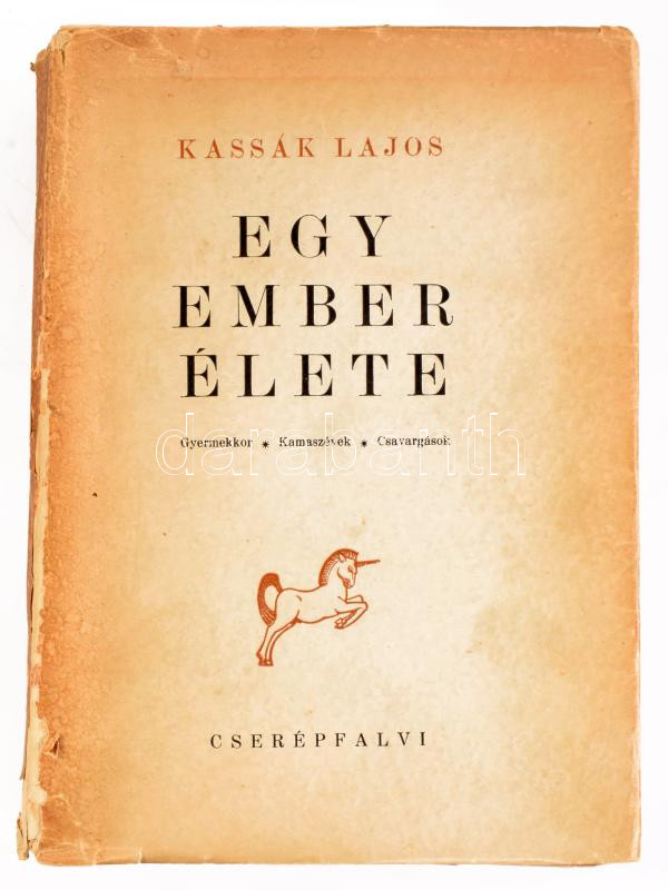 Kassák Lajos: Egy ember élete. Gyermekkor * Kamaszévek * Csavargások. Bp., 1946, Cserépfalvi. Kiadói papírkötés, gerinc sérült, viseltes állapotban.