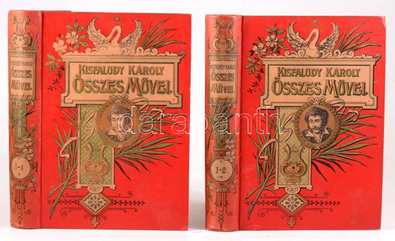 Kisfaludy Károly: - - összes művei négy kötetben. Életrajzzal bevezette Horváth Cyrill. Első-negyedik kötet. (Két kötetben.) Bp., [1899]. Magyar Könyvkiadó Intézet, (Szeged, Gönczi József-ny.), 668 + IV p.; 674 + II p. Kiadói aranyozott, festett egészvászon-kötések.