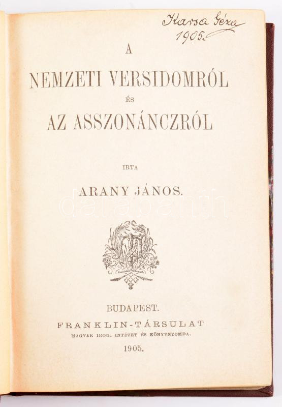 Arany János: A nemzeti versidomról és az asszonáncról.(1905.);