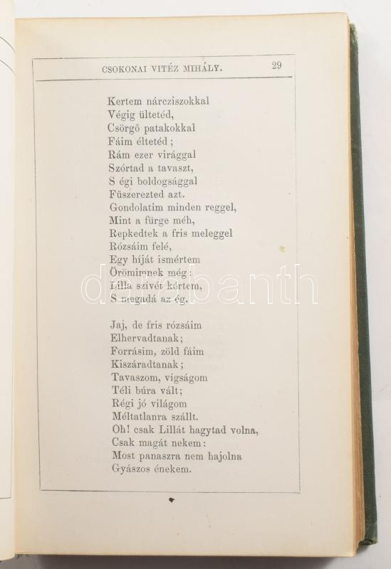 Nemzeti Lant. Magyar költők válogatott versei Kazinczytól máig. Összeáll.: Kuliffay Ede. Pest, 1873, Heckenast, Kiadói aranyozott, dombornyomott egészvászon kötés, aranyozott lapélek, gerinc sérült, kopottas állapotban.