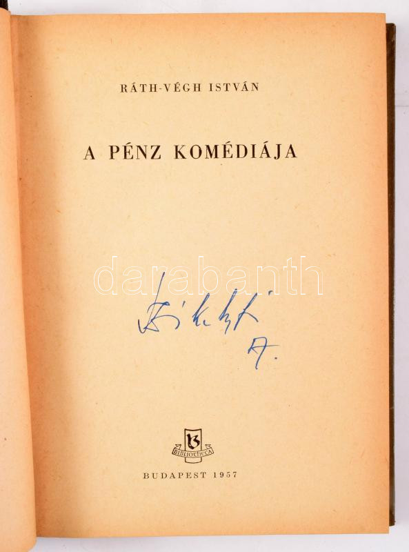 Ráth-Végh István: A pénz komédiája. DEDIKÁLT! Bp., 1957, Bibliotheca. 342p. Félvászon kötés, kissé kopottas állapotban.