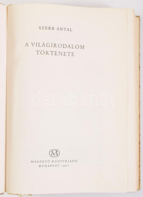 Szerb Antal: A világirodalom története. Bp., 1962, Magvető, félvászon kötés.