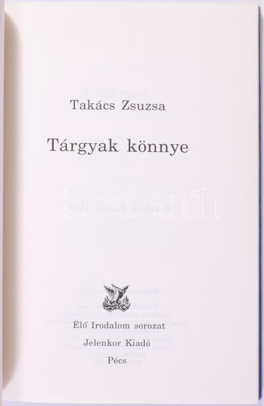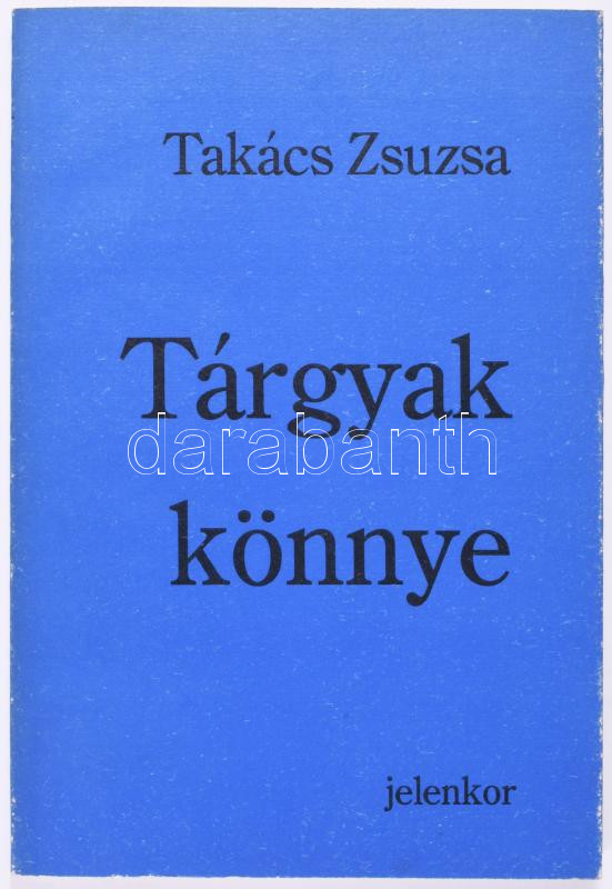Takács Zsuzsanna: Tárgyak könnye. Pécs, 1994, Jelenkor. Kiadói papírkötés, kissé kopottas állapotban.