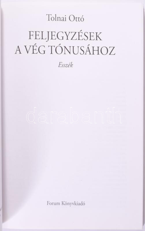 Tolnai Ottó: Feljegyzések a vég tónusához. Esszék. 2007, Forum Könyvkiadó. Kiadói papírkötés, jó állapotban.