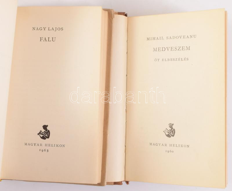 Új Elvezír Könyvtár sorozat 2 kötete. Mihail Sadoveanu: Medveszem. Nagy Lajos: Falu. Félbőr kötésben, kis kopással.