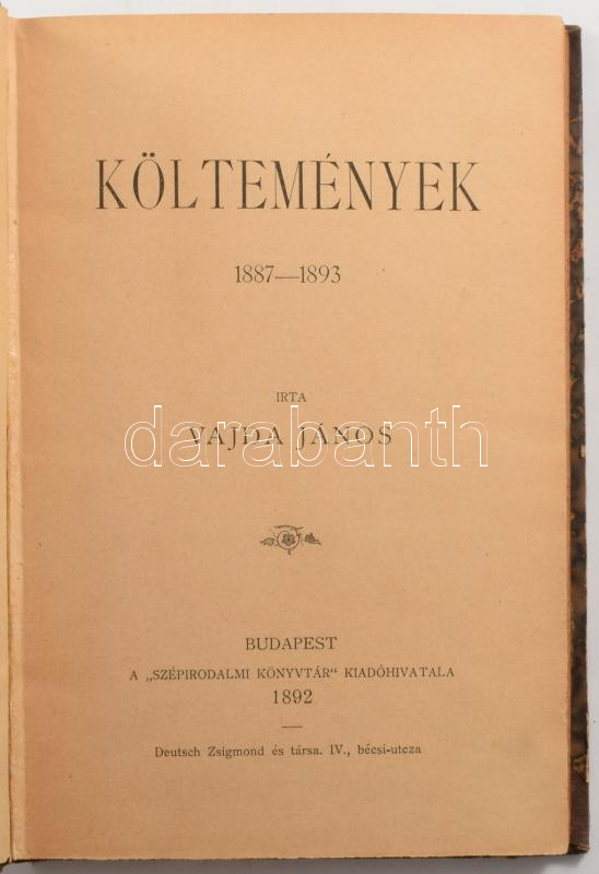 Vajda János: Költemények 1887-1892. Bp., Szépirodalmi könyvtár, 1892, félvászon kötés.
