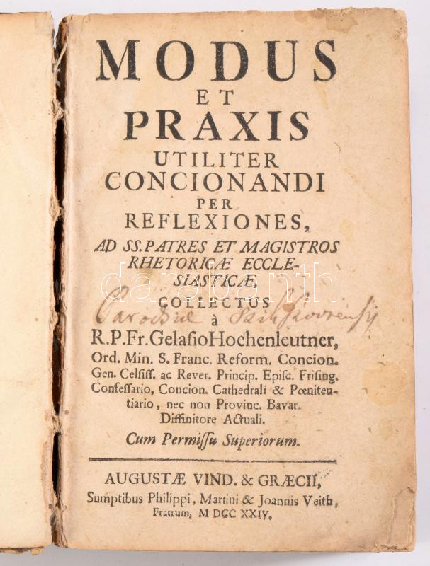 Gelasius Hochenleutner: Modus et Praxis. Utiliter concionandi per reflexiones, ad SS. Patres et magistros rhetoricae ecclesiasticae, collectus á R. P. Ftr. Gelasio Hochenleutner, ...