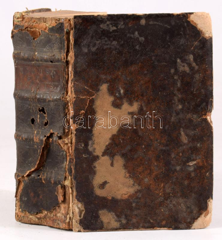 Korabeli félbőr-kötés, kopott, sérült borítóval és sérült gerinccel, kissé foltos lapokkal, elöl 5 lapon, hátul 4 lapon kis lapszéli sérülésekkel.