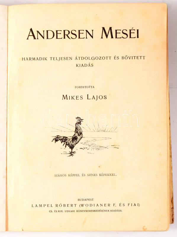 Andersen meséi. Ford.: Mikes Lajos. Bp., Lampel. 1+4 (litografál, színes képtábla) t. 222p. Félvászon kötés, sérült gerinc, kopottas állapotban.