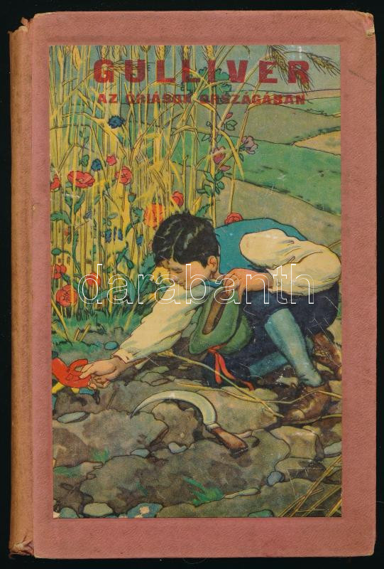 Swift, [Jonathan]: Gulliver utazásai az óriások országában. A magyar ifjuság számára átdolgozta: Szondy György. Róna Emy rajzaival. [Bp., 1926], Dante, 78+[2] p. Kiadói illusztrált egészvászon-kötés, kissé sérült borítóval és gerinccel, helyenként kissé foltos lapokkal, ajándékozási bejegyzéssel.