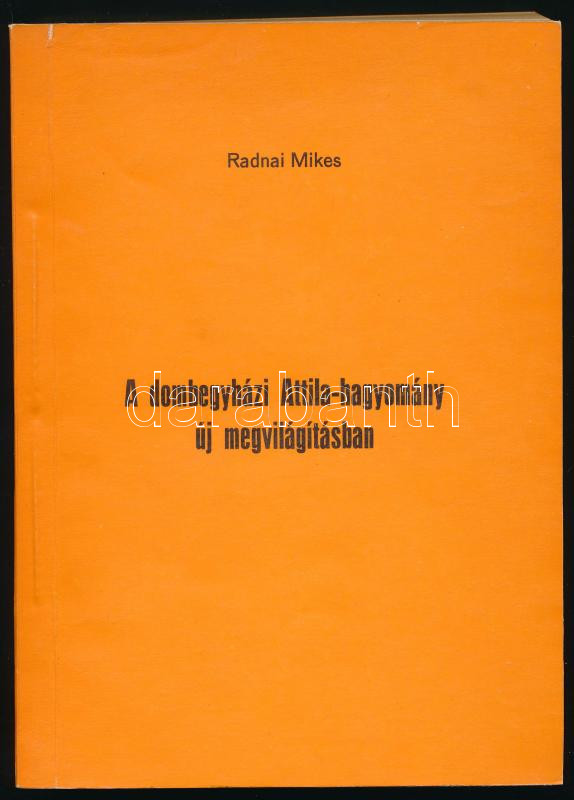 Radnai Mikes: A dombegyházi Attila-hagyomány új megvilágításban. Békéscsaba, 1981, Békés megyei Tanács VB Művelődési Osztálya, VIII+249+[1] p. Kiadói papírkötés.
