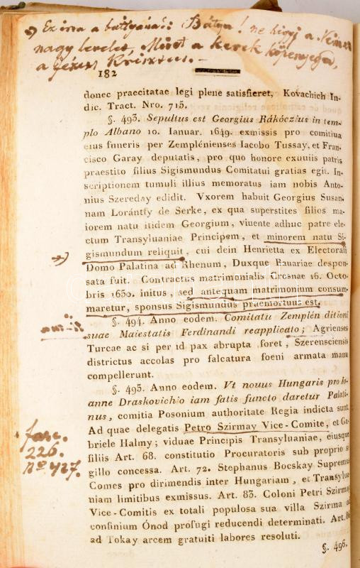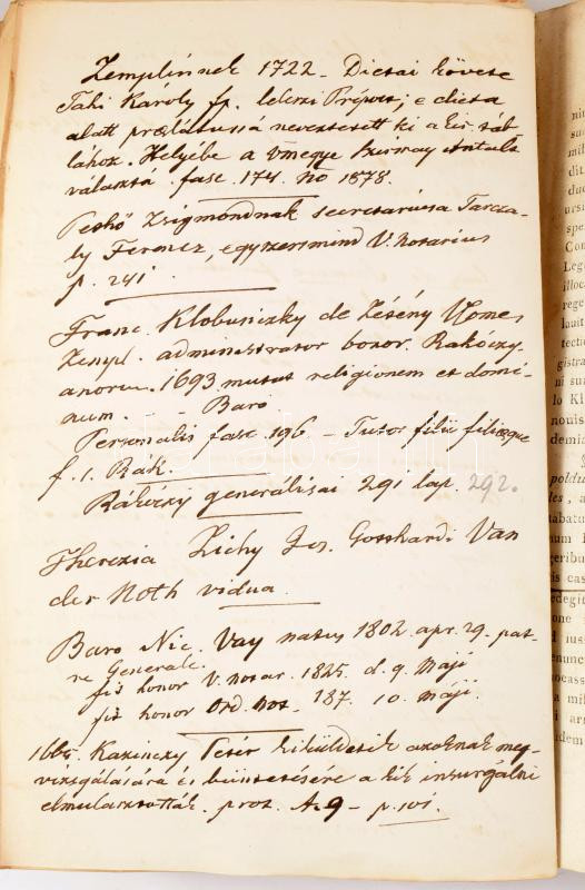 A címlapon a Zemplén-vármegyei szentkirályszabadjai Karsa Ferenc (1827-1915) 1848-as honvéd hadnagy, Görgey Artúr parancsőrtisztje, árvaszéki elnök névbejegyzésével, valamint számos kézzel írt jegyzetével (főleg az első részben), köztük 4 különálló lapon.