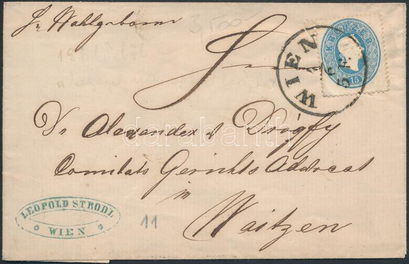 1861 15kr levélen "WIEN" - "WAITZEN"