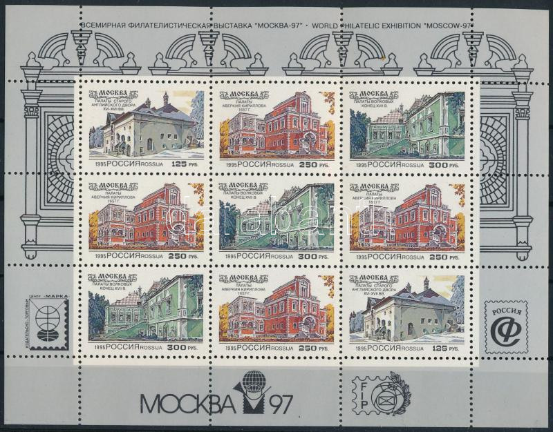 1995 Épületek Mi 415-417 kisív eltérő bélyegkiállítási kerettel, hajtott