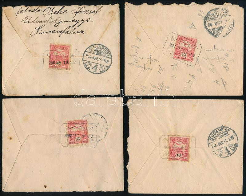 1906-1907 4 db levél "SIMÉNFALVA" postaügynökségi bélyegzéssel