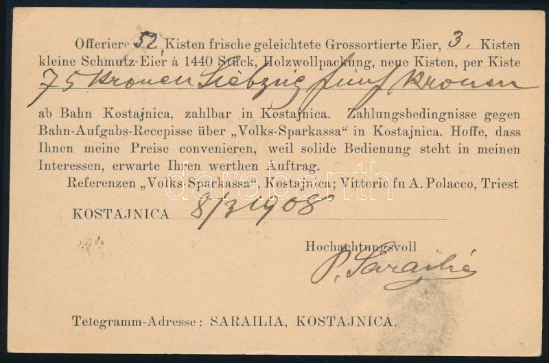 1908 Díjkiegészített díjjegyes levelezőlap