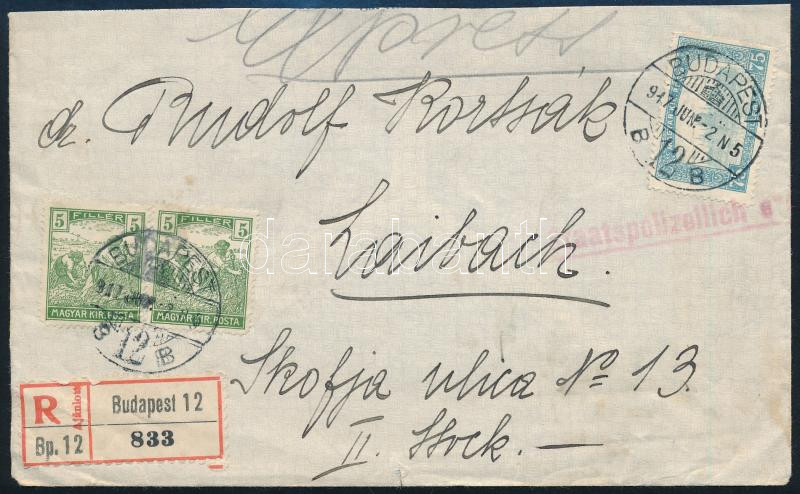 1917 Ajánlott levél Budapestről Laibachba