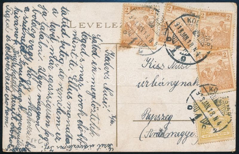 1918 Képeslap Turul-Arató vegyes bérmentesítéssel / Postcard with 10f franking