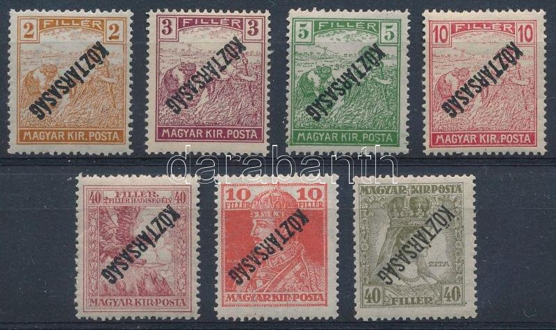 1918 Köztársaság 7 klf érték fordított felülnyomattal (16.500)
