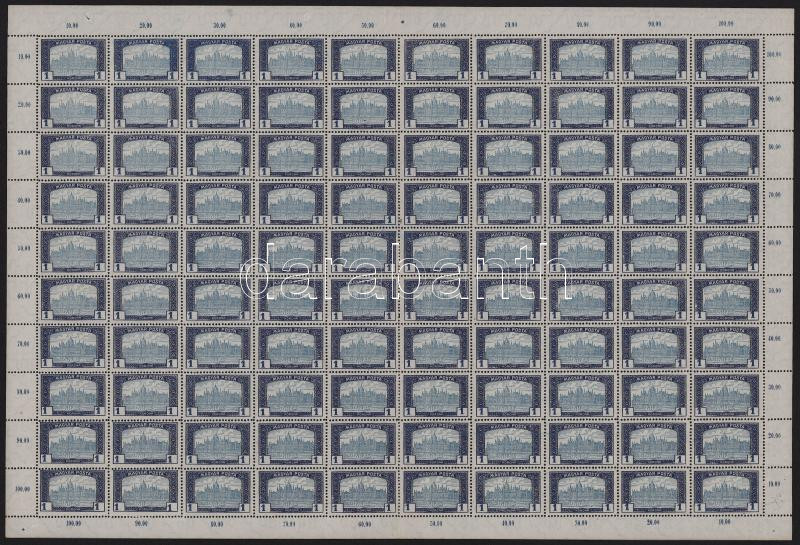 1919 Magyar Posta 1K hajtott teljes ív