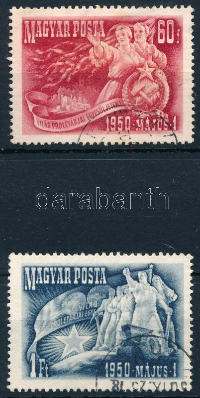 1950 2 db Május 1. bélyeg számvízjellel